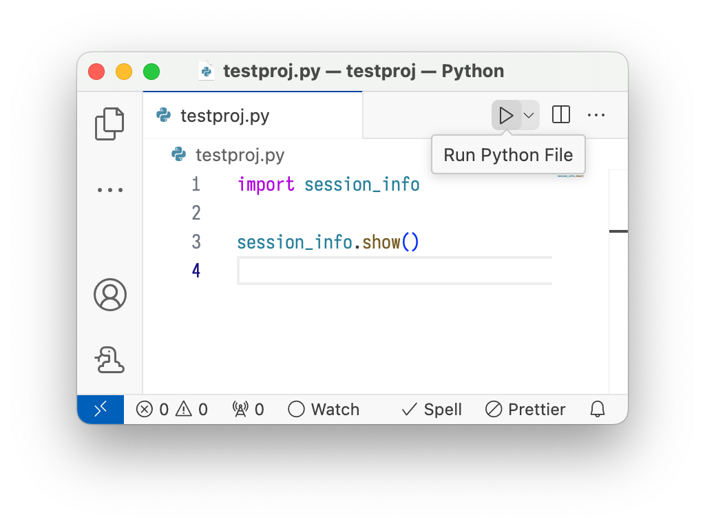3. You should now be able to use the environment. For example, if you have the python.terminal.activateEnvironment setting set to true and you open a new terminal, the environment should be activated. Alternatively, you could press the "play" button to run a file in the environment: